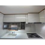 キッチンの調理スペースが狭く、調理がしづらいので広げたい事と置き型食洗器がキッチンの上にあるのですっきりさせたい事が一番のご要望。 また、レンジフードは掃除がしやすいもので、ガスコンロは、交換したばかりなので既存利用したいとのことでした。
