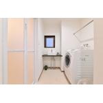 洗濯機から取り出した衣類を一時的に掛けれるようにあえて上部にハンガーパイプを取り付け、スペースを有効活用しました。