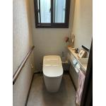 スタイリッシュな見た目のアラウーノに交換ですっきりとした印象のトイレに。ペーパーホルダーのカウンターを取り付けたことで小物を飾ることができ、より素敵な空間に仕上がりました。