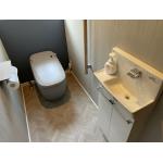 お客様のご要望に応じて、トイレはLIXILのタンクレストイレ「サティスG」に取り替え。省スペースかつ高級感のあるデザインで、使い勝手と美観を両立しました。 手洗い器は別置きタイプの「LIXIL コフレルワイド」を設置し、広々とした使いやすさを実現。 内装は、アクセントクロスを採用し、明るく温かみのある空間に仕上げました。