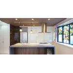 床の張り替える工事から始まったLDKのリフォーム計画ですが、オーダーメイドのダイニングカウンターと綺麗に生まれ変わったキッチン、きれいになった床や天井のアクセントに、お客様が新築当初こだわって取り付けたステンドグラスも合わさりY様の思い描いていたキッチン空間を作ることが出来ました。