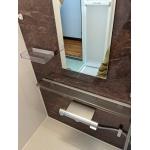 天井の換気扇は、換気乾燥暖房機にしました。 入浴前に浴室を暖めたり、ランドリーパイプに洗濯物を干して乾燥機として使うこともできます。 浴室のドアは折り戸へ変えたことで、見た目もスッキリしました。