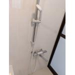 浴槽の横に設置されていた手摺りはそのまま再利用し、浴槽は新しく大きいサイズに変えました。 浴槽の蛇口を混合水栓に変えたので、温度調節も簡単になりました。