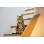 メゾネット上階のフルリフォームに続き、今回は下階部分をご依頼いただきました。工事中はネコちゃんが階段から下りないよう厳重に囲いをして、できるだけストレスがかからないように配慮しています。玄関はクロスのブルーを美しく見せるため照明にもこだわられ、ダウンライトは昼光色にしました。2回目とあって、おふたりも好みのインテリアを追求され、さらに心地よい空間になっています。
