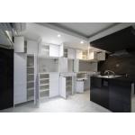 収納力が豊富で、白を基調に清潔感を演出しています。