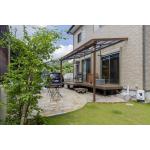 外構やお庭は手付かずの状態でしたが、ナチュラルな外構へとリフォームしました。車2台分の駐車スペースを確保し、カーポートを設置。アプローチは、車が入れるよう門塀を寄せ、車対応のコンクリートで施工。あえてムラのあるレンガを使用することで、建物の経年変化に自然と馴染む雰囲気に仕上げました。お庭のデッキには、テラス屋根を設置し、目の前には乱形石を用いたテラスをつくりました。リビングからも眺められる場所にはデザインウォールを設け、お部屋からもくつろげる落ち着いた空間を演出しました。