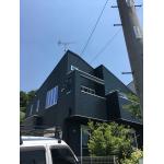 外壁は濃いめの黒系で塗装し、雨樋などの付帯部は黒で塗装を行いました。 また艶も3分艶で落ち着かせている為 新築の建物ような仕上がりになりました。