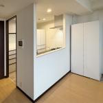リビング側にあったカウンターを撤去し、壁面をすっきりと整えました。開口部は天井まで大きく広げ、より開放感のある空間に生まれ変わっています。