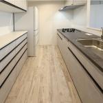 リビング側に出ていたカウンターを取り払ったことで、キッチンスペースが広がりました。リビングを眺めながら調理できる配置となり、作業もしやすく快適な空間になっています。