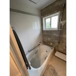 お施主様好みの壁面を採用し、落ち着きのある空間としました。物干しもセットし、雨の日等も便利な浴室になりました。