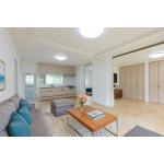 ご要望に合わせてダイニングとの壁を撤去し、広々としたLDKのオープンキッチンに仕上げました。 キッチンはLIXILのESシリーズを採用し、引き出し収納や昇降式ウォールキャビネットを取り入れることで、使いやすさと快適さを両立しています。