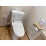 リフォーム後のトイレは、ナチュラルな木目調の床と明るい壁紙を組み合わせ、清潔感と温かみのある空間に生まれ変わりました。最新の節水型トイレを採用し、使い勝手はもちろん、日々の水道代の節約にもつながります。