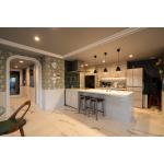 ネコちゃんファーストであり、おふたりのご趣味や嗜好をさらに膨らませ、より大胆な間取りとインテリアデザインを提案しました。普段は使用することが少ない素材も多数選ばれたので、タイルやモールディングなどの仕上がりにも留意しています。明るすぎない海外テイストのゆとりある住まいを目指しお好みをすべて反映できて、より上質でやすらげる空間になりました。