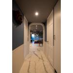 ネコちゃんファーストであり、おふたりのご趣味や嗜好をさらに膨らませ、より大胆な間取りとインテリアデザインを提案しました。普段は使用することが少ない素材も多数選ばれたので、タイルやモールディングなどの仕上がりにも留意しています。明るすぎない海外テイストのゆとりある住まいを目指しお好みをすべて反映できて、より上質でやすらげる空間になりました。