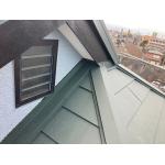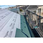 こちらもカバー工法で仕上げていきます。 ルーフィングシートを貼り、新しい屋根材を張っていくという施工は大屋根と同じです。 しかし、下屋根は壁と接する部分があり、雨漏りの可能性が高いとされています。 雨押え板金を取り付け、丁寧に雨仕舞を行っていきます。
