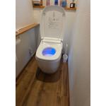 最新機能を兼ね備えたトイレに交換完了です。自動洗浄などの設定も付属のリモコンとは別にご自身のスマホでも可能です!家族が多いからこそ自分にあった好みの設定を登録して、いつでも快適に!