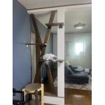 間仕切り壁に筋交い(建物の耐震性を保つための部材です)があったため、それは活かしつつ、最大限に開口を広げるご提案を行いました。