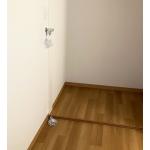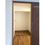 物置スペースの床レベルが若干(約5cm)程度高く段差が付くことが測量時にはわかっていたため、そこを洗濯機置場として有効活用しました。(引戸の奥のスペース)