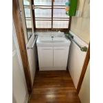 洗面化粧台を新しく交換し、電気温水器を設置します。
