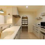 ご実家は伝統工法で建てられた風情あるお住まいでした。 耐震性能の向上や屋根の軽量化、柱の補強等で安心して住まうことのできるようお家を「強化」。 構造上、撤去が難しい「差し鴨居」や「大黒柱」はそのままに、クロスで仕上げ洋風に。付梁のような立体的なアクセントになり、リビングの雰囲気がより一層素敵になりました。 間取りは生活動線、家事動線を考慮し、極力無駄のないように工夫しました。 かわいらしいインテリアはお施主様のこだわりです。一段と目を惹くキッチンのペンダントライトは、あえて色違いに。3色とも絶妙な色合いで、遊び心もあり統一感ももたせています。 また、パントリーのアーチ型出入口もポイント。パントリー中のチェック柄のクロスとの相性は完璧です。キッチンの横にはワークスペースを造り、インテリア用の飾り棚を設置。 雑貨がお好きな奥様の大切な場所になりました。 思い出のたくさん詰まったご実家に新たな息吹を吹き込み、これからも長く住み継いでいけるお家になりました。