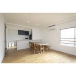 キッチンとリビングの間の壁を取り除くことで、LDKは広々とした開放的な空間に生まれ変わり、家族間だけでなく来客との会話やふれあいも自然に楽しめる空間となりました。