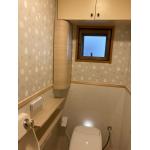 リフォーム後は、タンクレストイレを採用し、空間が広々と感じられるように。従来のタイル床からフロアシートに変更し、足元の冷たさを解消。目地のない床材でお手入れも簡単になりました。