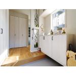 LDに隣接する和室を取り込み、広々とした空間にすることをご提案しました。 キッチンは憧れのペニンシュラ型、家事動線を考慮しサイドにダイニングテーブルを配置しました。 収納は「どこにどのようなものをどのくらい収納するのか」を綿密に打ち合わせ、お施主様と一緒に計画を立てました。 内装にはエコカラットやタイルを採用し、随所にこだわりを散りばめました。 クロスは色柄やアクセント配置など、魅力的なデザインの詰まったインテリアを目指しました。 広いリビングにはシーリングファンを設置。 機能性はもちろん、お部屋の雰囲気に良く合う素敵なインテリアになっています。 玄関の構造上、抜けない柱もインテリアにしました。 柱にアイアンの飾りを施し、アイアン越しに見える水色のドアがかわいい印象です。 デザインと機能性のどちらも兼ね備えた、ご家族の大切なお家になりました。