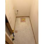 トイレは交換したばかりとのことだったので、既存利用にしました。 トイレ本体の色がパステルアイボリーなので、手洗器の陶器色もパステルアイボリーに揃えた。 出幅を最小限にする為、埋込の手洗器にした。