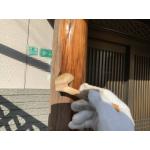 良い素材の柱を使用されておりますので、木質感を生かす為表面上の剥離部や汚れを丁寧に紙やすりでこすり、クリア塗装を3回上塗りして防水性や防虫、木質感が出る様に致しました。