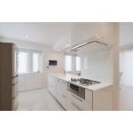リフォーム後は、白を基調とした明るく清潔感のあるキッチンに。 空間全体が明るく開放的な印象に生まれ変わりました。床や壁、天井に至るまでトーンを統一することで、自然光をやわらかく反射し、空間に広がりと清潔感を与えています。