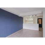 ネイビーブルーのアクセントクロスがモダンな印象を与え、空間に奥行きをプラス。キッチンはオープンスタイルに変更され、リビングとの一体感が生まれました。 壁面にはペットのためのキャットステップを造作し、遊び心をプラス。
