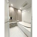 お客様のご希望で、ドア外タオル掛けを2つ付けたいとの事だったので、取付いたしました。バスタオルとバスマットを両方とも掛けられるようになりました。 また、以前のような凹凸のある正面パネル(鏡や収納棚)がなくなったことで、お手入れのしやすさもアップ! デザインも落ち着いた雰囲気で、ゆったりできる空間になりました。