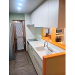 キッチン全体の色をガラッと変えてホワイトでまとめ、より明るい印象になりました。 ワークトップは焼き物ならではの繊細で味わい深いセラミックトップのラパートシルクを選びました。熱や汚れ、キズにも強く長くキレイなキッチンを楽しめます。 シンクもワークトップに合うハイブリッドクォーツにしています。衝撃や汚れに強く、収納ポケットも付いています。 コンロもIHに変え、全体がよりスッキリして、デザイン性と使いやすさを兼ね備えたキッチンに仕上がっています。