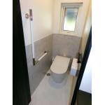 トイレ本体をタンクレスタイプに変更し、給水管や水抜き栓も交換してすっきりとしました。 手洗いはトイレ向かいの収納スペースを改修して、新たに洗面スペースを設けております。 床と腰高の壁にはホーロー素材のパネルを貼り、汚れが付きにくく、お掃除のしやすい空間に生まれ変わりました。