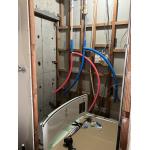 築30年以上、マンションのトイレ付ユニットバス。息子様の大学進学を機に中古マンションを購入。卒業後はお父様が出張の時に活用したいと水廻りリフォームのご依頼でした。シャワーの水圧が弱いとお客様ご自身で混合水栓を交換、また紙巻器もお客様で付け替えられたものを使用されておりました。