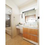 洗面ボウルも広く、カウンターを延ばして開放的に。