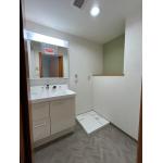 照明が暗く、洗面台や壁紙の劣化が目立っていました。