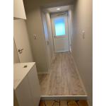 床材と壁紙を明るい色に変更し、広く感じられる玄関に。