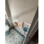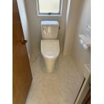 タイルの床・壁のトイレで寒々しく感じる空間。入口の段差も大きく、出入りがつらい状況。