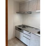 ホワイトのキッチンパネルに手元灯をLEDの新しいモデルに変更し、明るいキッチンとなりました。