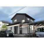 当初金属サイディング1色でしたが、外観パースで検討重ね、1階2階と貼り分けシンプルモダンなデザインにしたいとご家族の皆様で選定いただきました。白色の軒天は木目調に張替え、きれいでまとまりのある外観デザインとなりました。