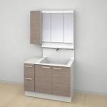 洗面空間全体の雰囲気づくりとして、壁紙にはグレー系、床のクッションフロアには濃いグレーをお選びいただき、洗面化粧台の扉色は落ち着きのある茶系の木目調を採用されました。以前よりも落ち着いた雰囲気で使いやすい空間へと仕上がっています。 今回ご提案させていただいた TOTO「オクターブLite」 は、見た目がすっきりとしてお手入れもしやすい、日々の使い勝手を大切にしたシリーズです。 化粧台はシンプルな2枚扉タイプで、温かみのある“ミディアムウッドN” のカラーが、空間の落ち着いたトーンととてもよく調和しています。 また、ワイドLED三面鏡は明るく手元を照らしてくれるため、朝の準備やスキンケアの際も快適にお使いいただけます。 お掃除ラクラク水栓は水がたまりにくい構造で汚れが付きにくく、お手入れの時間をぐっと軽減。 さらに、ひろびろ設計のボウルは水はねしにくく、洗顔やちょっとした作業もしやすい形状です。 お客さまが大切にされている「将来にわたって安心して使えること」を踏まえ、デザイン性だけでなく利便性やお掃除のしやすさを備えたプランとなっております。