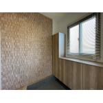 玄関ホールにはLIXIL「ラシッサD」の玄関収納を設置し、収納量が大幅にアップ。壁一面にはエコカラット「ラフソーン」を施工。木材を粗く削ったような表情のレリーフが、柔らかく落ち着いた雰囲気を演出し、玄関を上質な空間へ導いてくれます。調湿・脱臭効果もあり、玄関特有のこもりがちなにおい対策にも最適です。