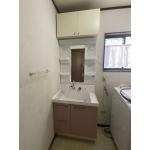 小物を収める収納棚ですっきり洗面・脱衣所に