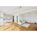 アイランドキッチンにしたいとのご要望でしたが、マンションで移動できないパイプスペースやインターホン等があったためにペニンシュラ型をご提案しました。 少し古く感じる内装も一新して、華美な色あいではなく白を基調とした明るくシンプルな内装で、飽きのこない空間づくりを目指しました。