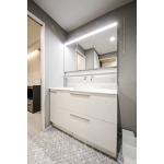 洗面、パントリー、キッチンを通ってDKに抜ける家事を効率的に進める動線と、廊下と並行して通る洋室、WIC(ウォークインクローゼット)、和室からDKに抜ける着替えを効率よく進める動線が、それぞれ回遊できるようになっていることで家事や生活の暮らしやすさの質を上げています。