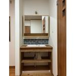 造作風の洗面化粧台です。ミラーも別手配で新築のようなお洒落な洗面台となりました。