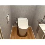 トイレ本体の取替、内装(床シート、天井壁クロスの貼り替え)をしました。 ホテルのような高級感溢れる空間に。