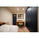 インテリアのお好みが明確でしたので、塗り壁やリアルウッドのアクセントなどオリジナル感のある素材をご提案しております。部屋数確保のため廊下形状を変更し、回遊性と可変性のある間取りにして必要なところに収納を設けました。設備を一新し断熱性能もアップしましたので、より快適にお住まいいただけます。