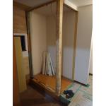 既存のシューズボックスを撤去。正面のスペースを間取り変更して大型のシューズクロークを設置。玄関スペースが広々と使えるようになりました。